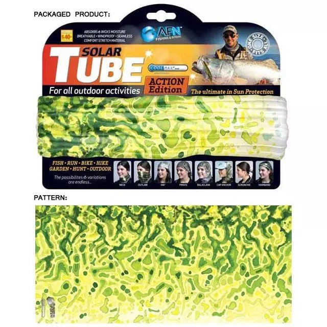 The Solar Tube is made with the quick drying. UV protection of coolmax which makes these solar tubes great for any outdoor enthusiast. The Solar tube is a one size fits all in a seamless stretchable fabric for Ultimate Comfort with a range of great designs.