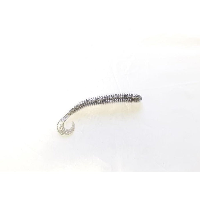 Jed Welsh Curly Tail Ribbed Worm 4" Smoke Glitter Qty 10