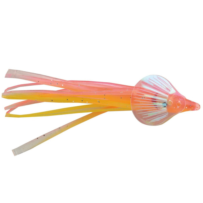 The 2.5" Geisha Squid has been designed with a unique, hand tied set of shimmer scales. These scales impart an erratic action which cause the skirt to pulsate and swim without the need for a dodger. The Geisha Squid was designed as a trolling bait, and is UV enhanced for maximum attraction.