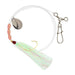 Size 1/0 Fluke Rig w/ Spinner/Mylar Teaser 42" 60lb Leader Fluke Rig Spinner & Mylar Teaser Tail. Size 1/0 gold plated wide gap hook. Spinner features red mirror beads & mylar teaser tail to attract fluke. 42 inch x 60lb monofilament leader. Three way swivel & duo-lock snap.