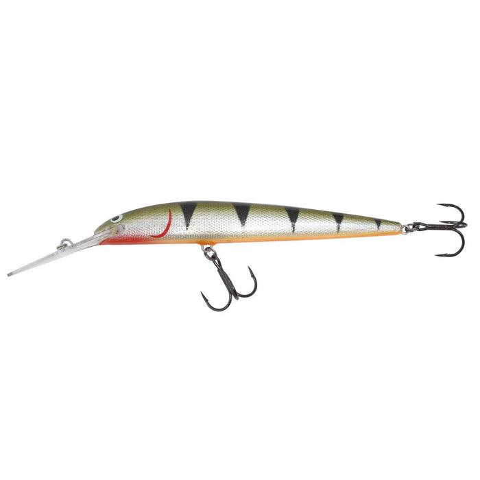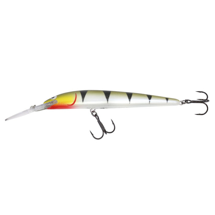 This open-water trolling crankbait is available in two sizes with varying diving depths. The #4 dives 18’ to 25'. All are formed of balsa through the Heat Compression Molding (HCM) process and feature a welded through wire construction from the tie eye to the tail. Designed to imitate larger baitfish forage, the crankbait features a tight action that attracts aggressive gamefish response. The Rumble Stick is available in a multitude of colors, from match-the-hatch patterns to bright and vibrant custom paint themes. Features premium short shank treble hooks and an oval split ring on the line tie.