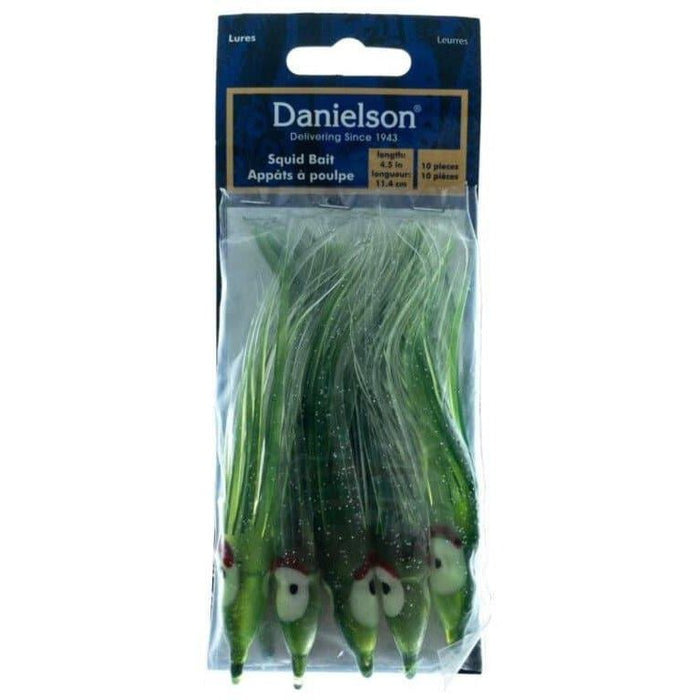 Danielson Squid Bait 4.5" Evergreen Clear/Silver Glow Qty 10