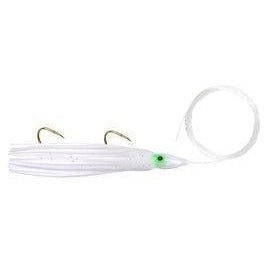 A deadly meal to all gamefish! With its frantic, darting movements, this squid bait has a vivacious tentacle tail and inviting hand painted eyes fish cant say no to.Danielson SQDR45111 Squid Rigged4.5" Glow White w/Green Eye