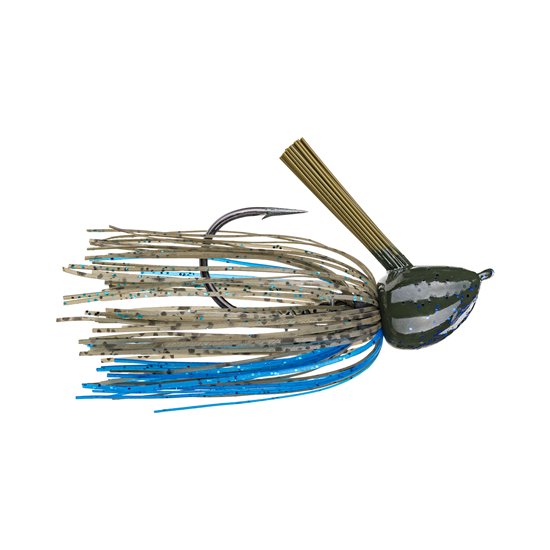 Equipped with a corkscrew wire baitkeeper, it is able to keep soft plastic trailers in place better than a standard barbed keeper and is constructed with a full-bodied 60-strand silicone skirt that produces a lifelike undulating action in the water.