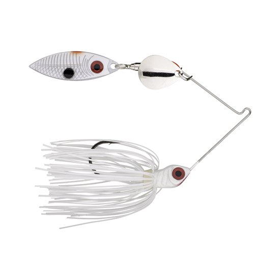 The bushy-tailed Strike King® Red Eyed Spinnerbaits feature a big red eye not only on the head but on the blade too--giving forage-seeking bass an unmistakable target to key on. The Red Eyed's flashy holographic blade is outfitted with a Spin-Eze® ball-bearing swivel, a flared-gill fish-shaped head, and a Vibra-Max stainless steel wire. These popular and proven baits are complete with a premium silicone skirt.