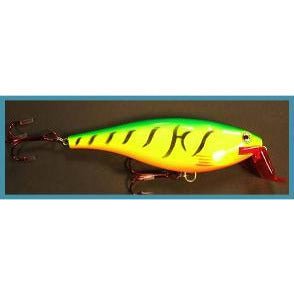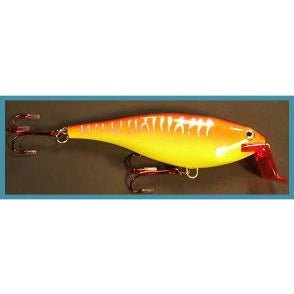 Casting in search of larger freshwater fish like muskie, northern pike, peacock bass and wall-hanging largemouth bass calls for a big, tough lure like the Super CiscoTM. These are super designed crankbait lures to look like baitfish like the whitefish, cisco, shad, perch, crappie and many other natural baitfish. These fishing lures are a must for your next trip up north to the many great lakes in Canada and all the way down south to the Amazon for peacock bass. These custom patterns and colors are a perfect imitation of your favorite baitfish like cisco, whitefish, shad, perch, crappie, and many more. Whether your a musky maniac or a big water trolling pro, you will all have one thing in common: the great fish-catching power of the RSC-16 rattling Super CiscoTM. Quality lures made by the Tackle Industries company and not overpriced! Our innovations will help you catch your next trophy musky. These fishing lures will dive to 6-8 feet when cast and up to 20 feet when trolled (See diving graph below for the RSC-16). These are bent lip crankbaits with big BLOOD RED 3X strength 2/0 size freshwater hooks. These baits are through wire lures and made tough to catch big freshwater game fish.