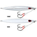The asymmetrical Kensaki cuts water fast with its knife-tip design, allowing it to get deep. The in-line eyelets stabilize the jig during descent and enhance the fluttering action under slackline. The jig is best fished with a "lift-and-fall" slow-pitch technique to get the Kensaki darting aggressively upwards during the lift, followed by a very tight horizontal flutter on the fall.
