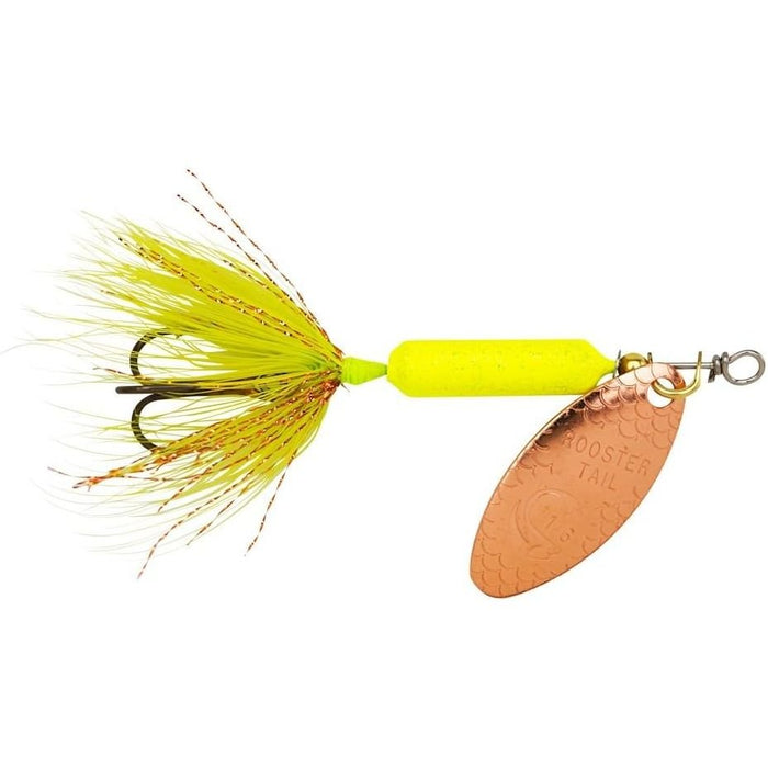 Worden's Original Rooster Tails were developed in the 1950s by Howard Worden and are one of the most productive spinners ever invented. The action of the spinning blade, in combination with the colorful, pulsating hackle tail, makes the Rooster Tail irresistible to any gamefish. It's a lure that consistently catches fish. The attractive spinning action of the Original Rooster Tail is available in a large variety of colors and sizes. You're sure to find one just right for any fishing situation. Whack um!