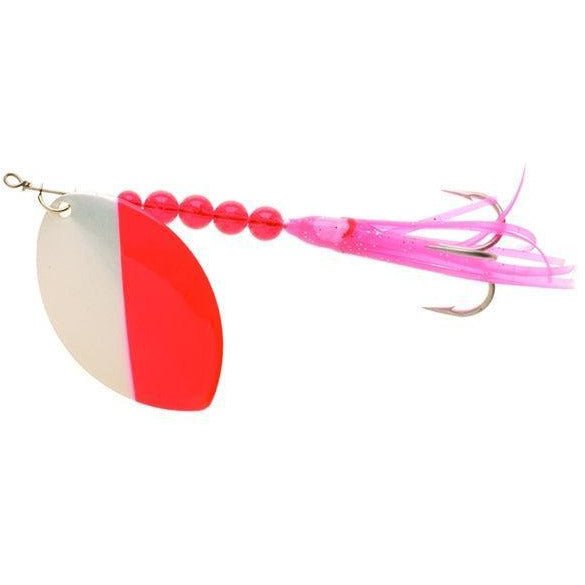 The Bob Toman Spinner now has squid skirts and a pre-sharpened, corrosion-proof treble hook. It includes a bearing washer for easy spin and center bead, rigid-hook design. It features low alloy brass blades and durable, powder coated finishes.