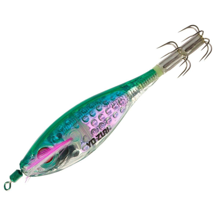 For that "injured baitfish" look that brings squid darting in for the kill, it's hard to beat a Yo-Zuri® Ultra Lens Aurora™ Squid Jig. Its brilliant holographic internal prism finish combines with Yo-Zuri's proprietary "Dimpled-Lens" body to perfectly mimic the look of scales flying off distressed prey—irresistible! This perfectly balanced, easy-to-fish jig sinks at a consistent rate of 6" per second and can be rigged individually or in tandem, similar to a sabiki rig. Features large eyes, super-sharp hooks, and a swivel line tie for super-lifelike movement.